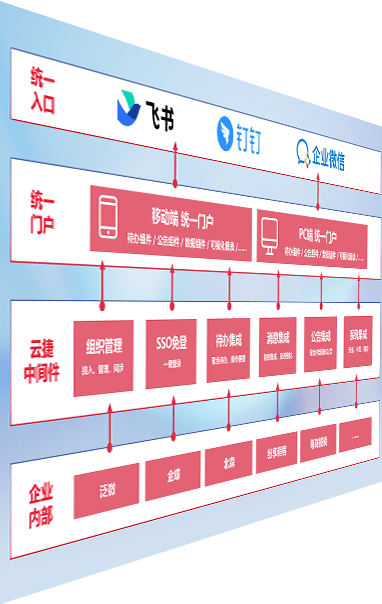 对协作平台提供支持服务,,,,支持企业应用与协作平台对接,,包含组织同步、、、、消息集成、、、、待办集成等。。。。支持目前主流的协作平台:钉钉、、企微和飞书。。。。